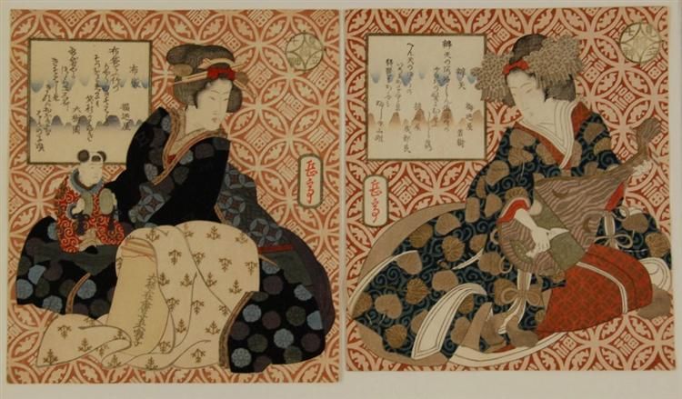 GEISHA PLAYING BIWA and GEISHA WITH BOY DOLL