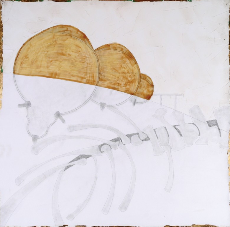 Pencil and gold leaf on canvas