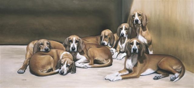 | Orange County Foxhounds at Rest: Melody '99, Bodacious '95, Benefit '97, Waffle '00, Brilliant '97, Frantic '96 and Music '99 | |