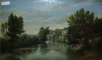 Bord de rivière aux lavandières et pêcheurs, 1869