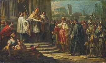 | Saint Ambroise refusant l'accès de son église à l'empereur Théodose | |