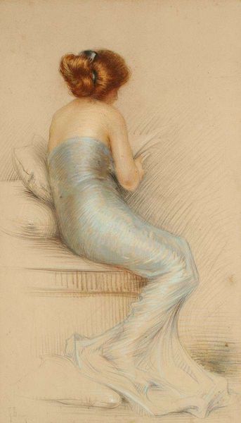 Modèle assis à la robe bleue