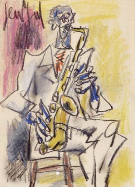 SAXOPHONISTE A LA CRAVATE ROUGE