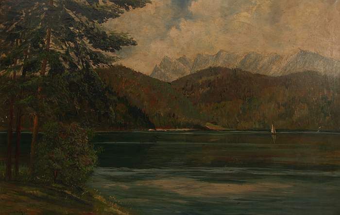 Landschafts- und Marinemaler, ansässig in München. Romantischer Gebirgsee