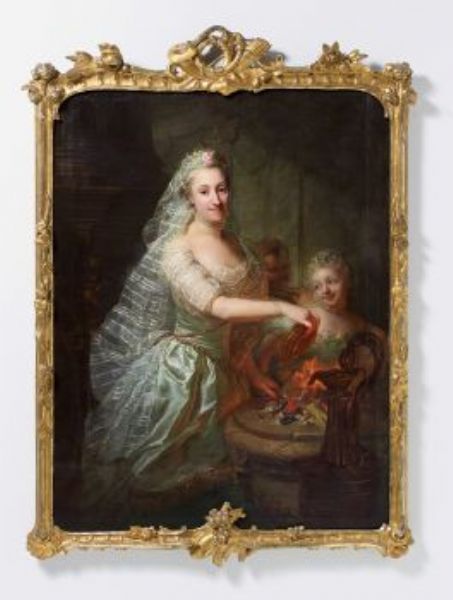 | Portrait of Magdalene Charlotte von Olthoff in a White Dress as a Priestess. Beside her is her 12 year old daughter Eleonore. | |