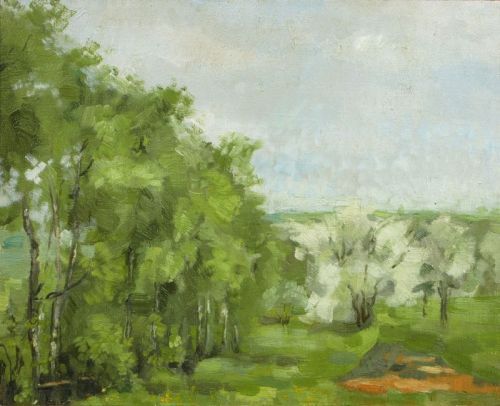 Landschaft mit blühenden Bäumen (bei Borthen)