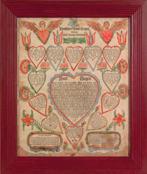 | Haussegen with printed text within an arrangement of hearts, winged angel | |