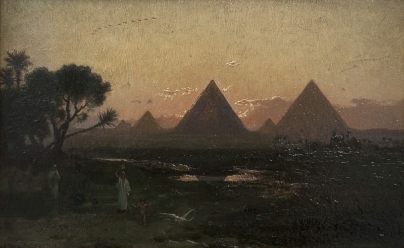 | Pyramiderna i Gizeh med figurer i Nilens deltaområde | |
