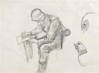 6 Zeichnungen: Szenen des Soldatenlebens im 2. Weltkrieg