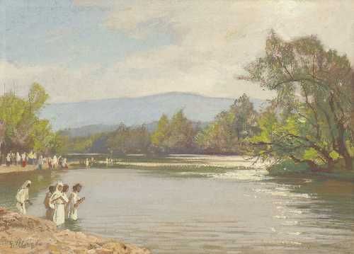 Gläubige am Ufer des Jordans