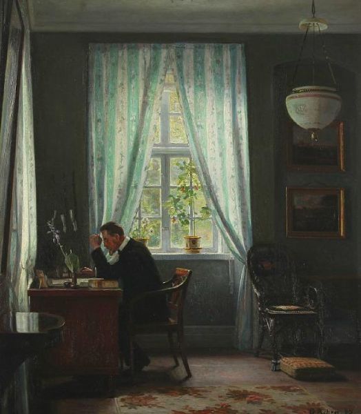 | Interior with the artist's father, pharmacist Eggert Christopher Achen sitting by his desk | |