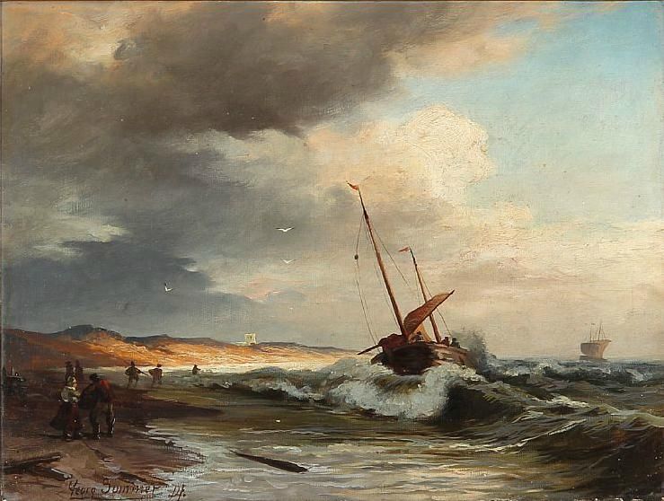 Beach scene with fishermen.