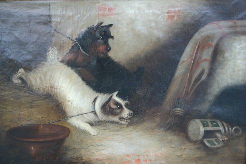2 Terriers Cornering Rat in a Lamp
