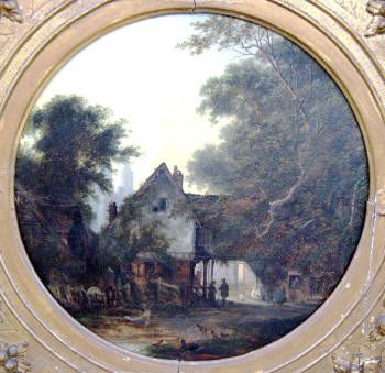 | The Church House, Penshurst, with Church of St. John, The Baptist beyond and figures in sunlit porch | |