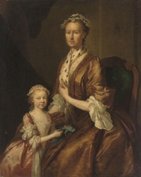 | Portrait of a mother and daughter, three-quarter-length, the former seated, in a brown dress and ermine shawl, the latter in a p | |