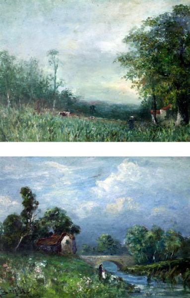 Oil on wood panel, 2 items