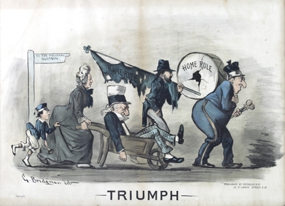 After George Brandt Bridgman (American, 1865-1943): 'Triumph' and 'The Political Donkey Cart', a pair of Irish Home Rule lithographs, published by Reynolds and Co, 32 James St, SW, 40 by 55cm each, in oak frames, size 50 by 65cm. (2) | |