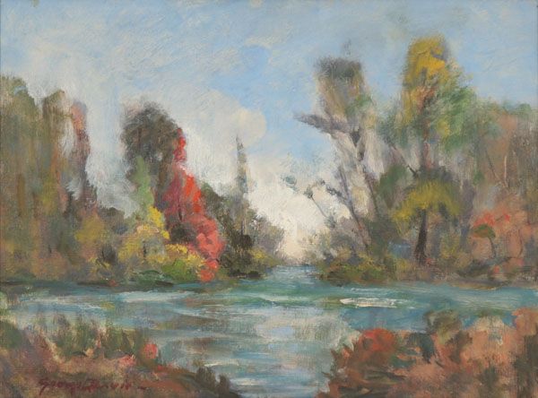 impressionist autumn landscape on the water