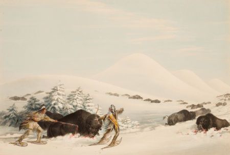 North American Indian Portfolio Buffalo Hunt, On Snow Shoes (Plate 15)