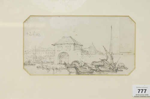 | Fishing Boats anchored near Buildings, said to be a view at Macao | |