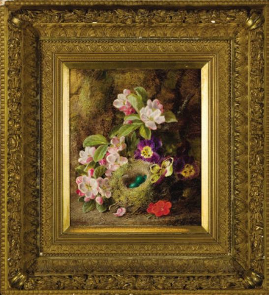 Floral Still Life with a Bird's Nest on a Mossy Bank