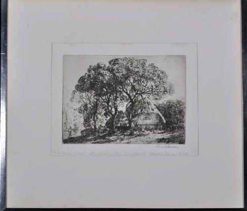A THATCHED FARMHOUSE AMONG TREES