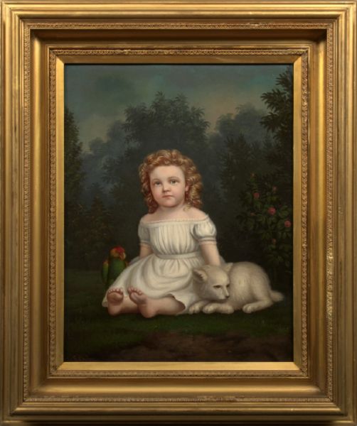| Portrait of a Girl Seated in a Landscape with a Parrot and a Cat | |