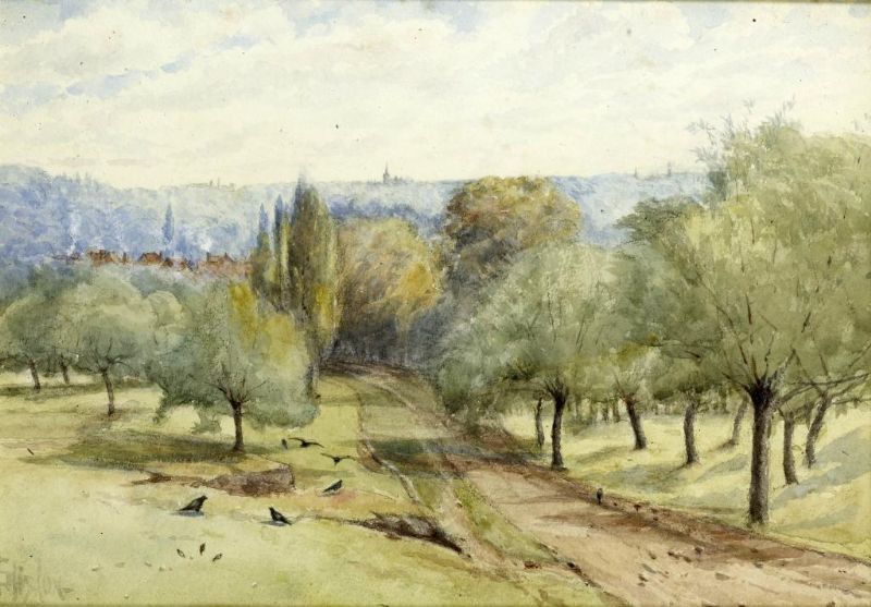 | A DISTANT VIEW OF WINDSOR CASTLE; STUBBLE BURNING IN AUTUMN; A TREE LINED PATH | |