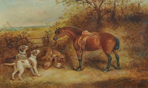 Horse with two retrievers and dead game in a landscape and a companion work both