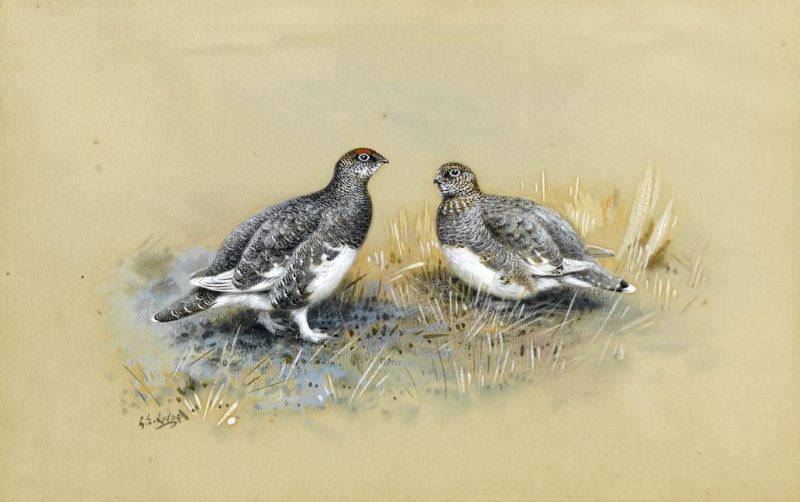 PTARMIGAN IN AUTUMNAL PLUMAGE - COCK AND HEN