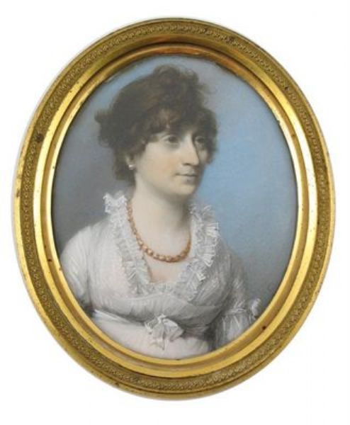| Portrait of Mrs. Jane Long half length, in a white dress with a lace collar and a gold necklace | |