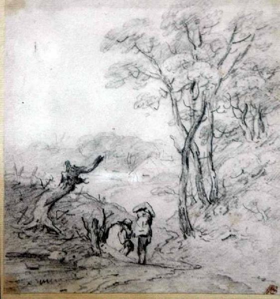 Wooded landscape with two figures