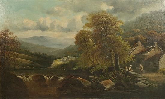 FIGURES BY A COTTAGE IN THE COUNTRY