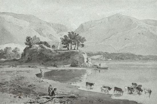 | Monochrome wash over pencil, on grey paper, framed and glazed | |