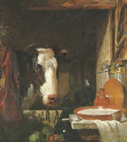 A cow's head and still life