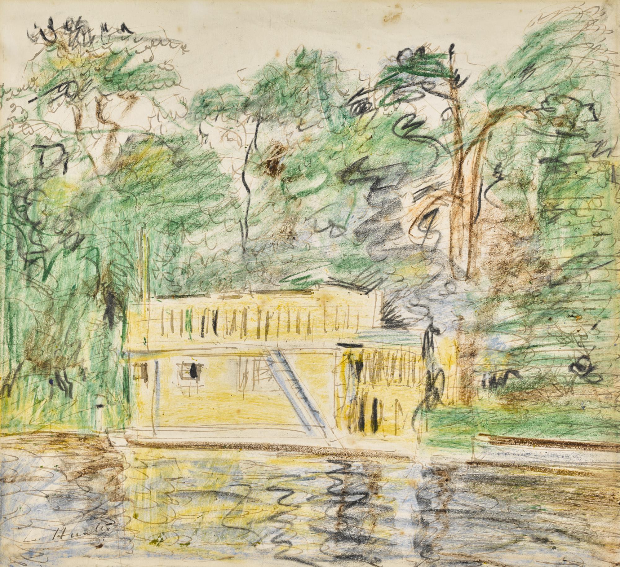 Wax crayon, pen and ink