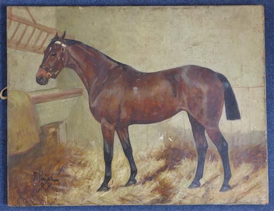 Portrait of a racehorse in a stable
