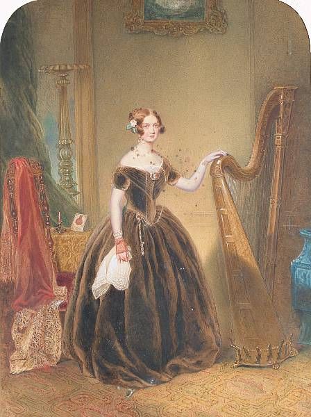 An elegant harpist in an interior.
