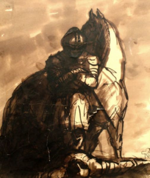 Pen pen and brown ink and wash, bears monogram, 3 item