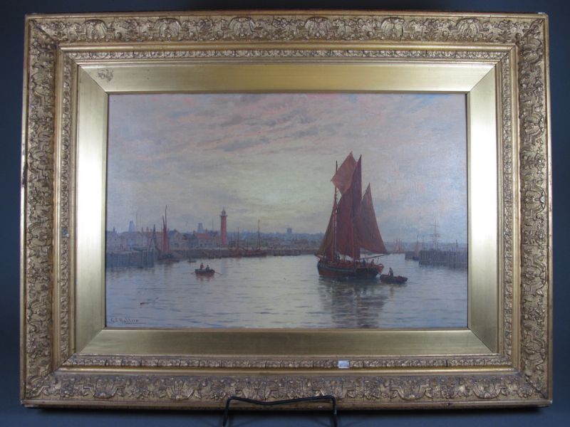 | Sailing Vessel Returning Home to a Dutch Harbour with Townscape in the Distance | |