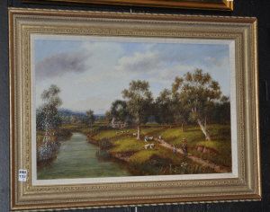 Pastoral study with sheep and cottage