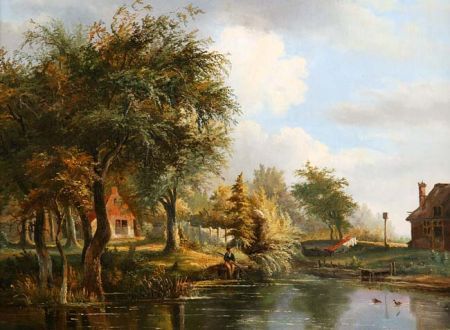 The River Yare with Cottage, Young Man Fishing from the Bank,