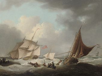 | Choppy waters off the Dutch coast, a government cutter running out to meet an English frigate beyond | |