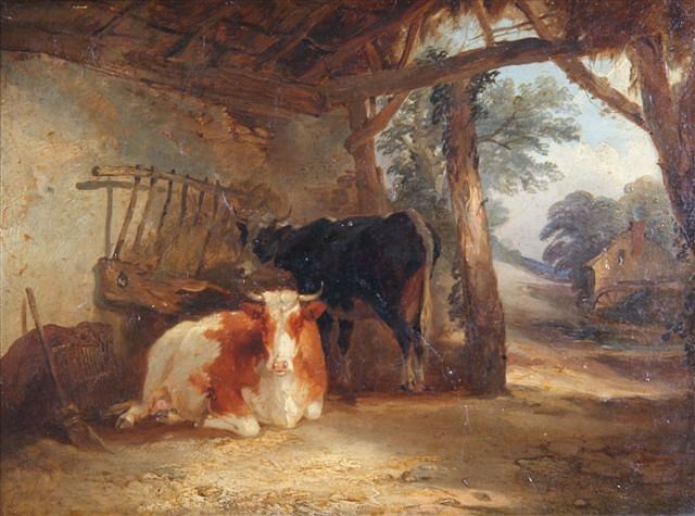 Cattle resting in a barn