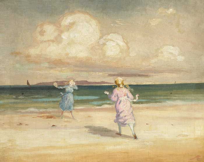 TWO GIRLS PLAYING BY THE SEASHORE