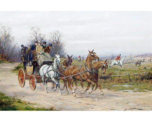 A stagecoach drawing alongside a hunt