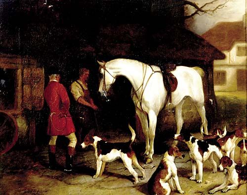 HUNTSMAN WITH HIS GREY HUNTER AND HOUNDS