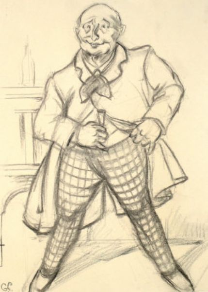 | Study of a gentleman standing full-length wearing a coat and check breeches | |