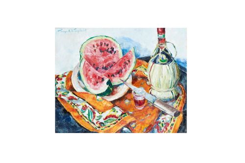Pastèque et bouteille de Chianti