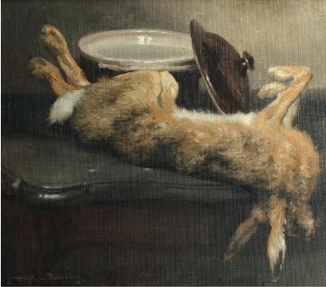 Nature morte ou Lièvre et terrine sur un buffet de chasse